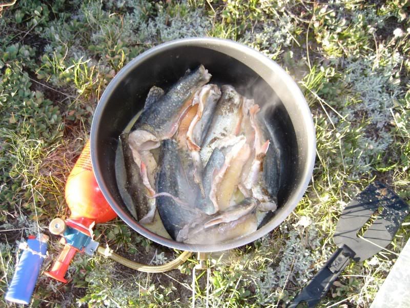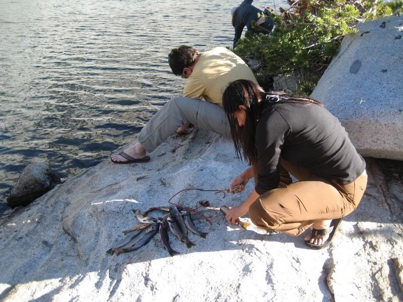 My wife and I did most of the gutting and cleaning, the fish are pretty small so while tedious it moves pretty quick. The biggest pain is having to walk half way around the lake to get far enough away incase a bear wants to come an lick the rocks.