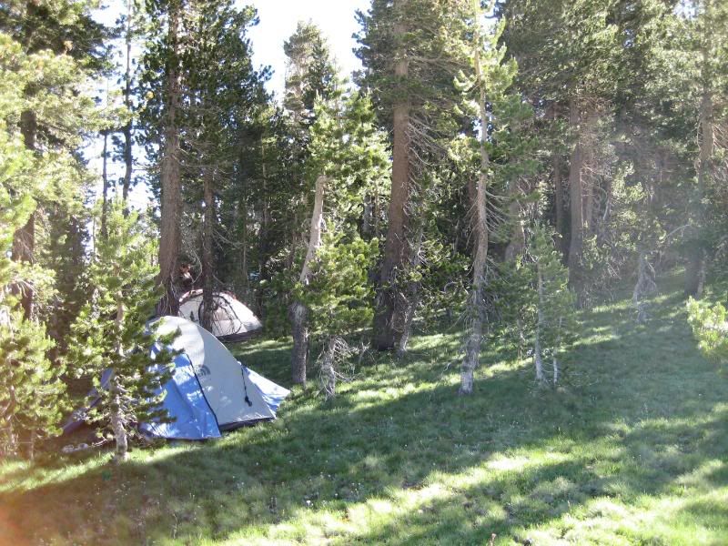 Camp at Booth Lake, you can see how we are down in a little valley with a view back up toward Fletcher Peak.