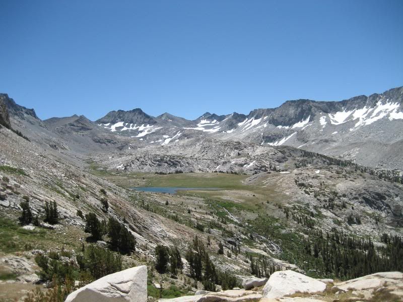 Once we got to Vogelsang Pass, our view opened up to an amazing valley with a view that was breathtaking (our destination in view to the right).