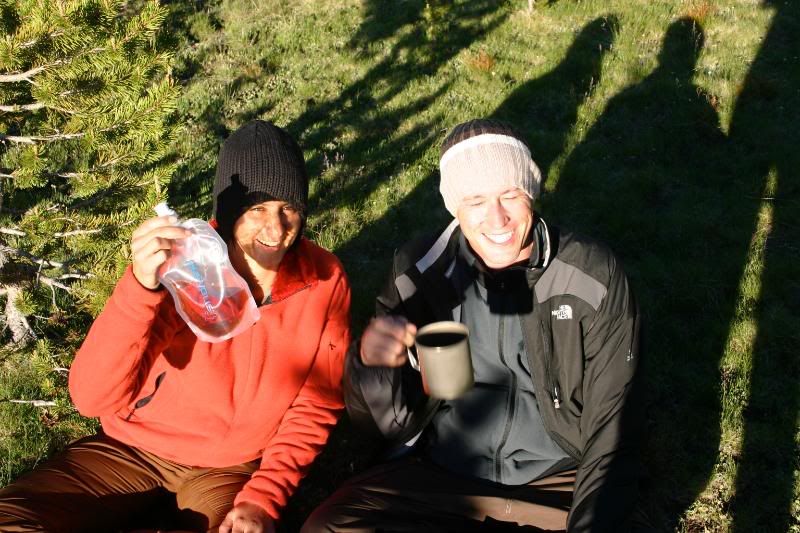 Part of our provisions included (a fifth each) Aberlour A'Bunadh Single Malt Cask Strength Scotch, Blanton's Single Barrel Bourbon, and some Grey Goose Vodka. They don't allow fires above 9,000ft so something needs to keep you warm at night.