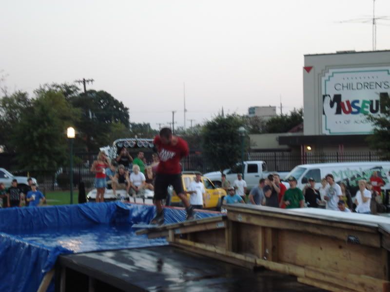 Sweet setup! You guys might want to make that landing pool a little wider. We had a guy go over the side at the one here in Dallas and it was even wider than that. Falling 7 ft onto concrete going 15 miles an hour off balance is no fun.