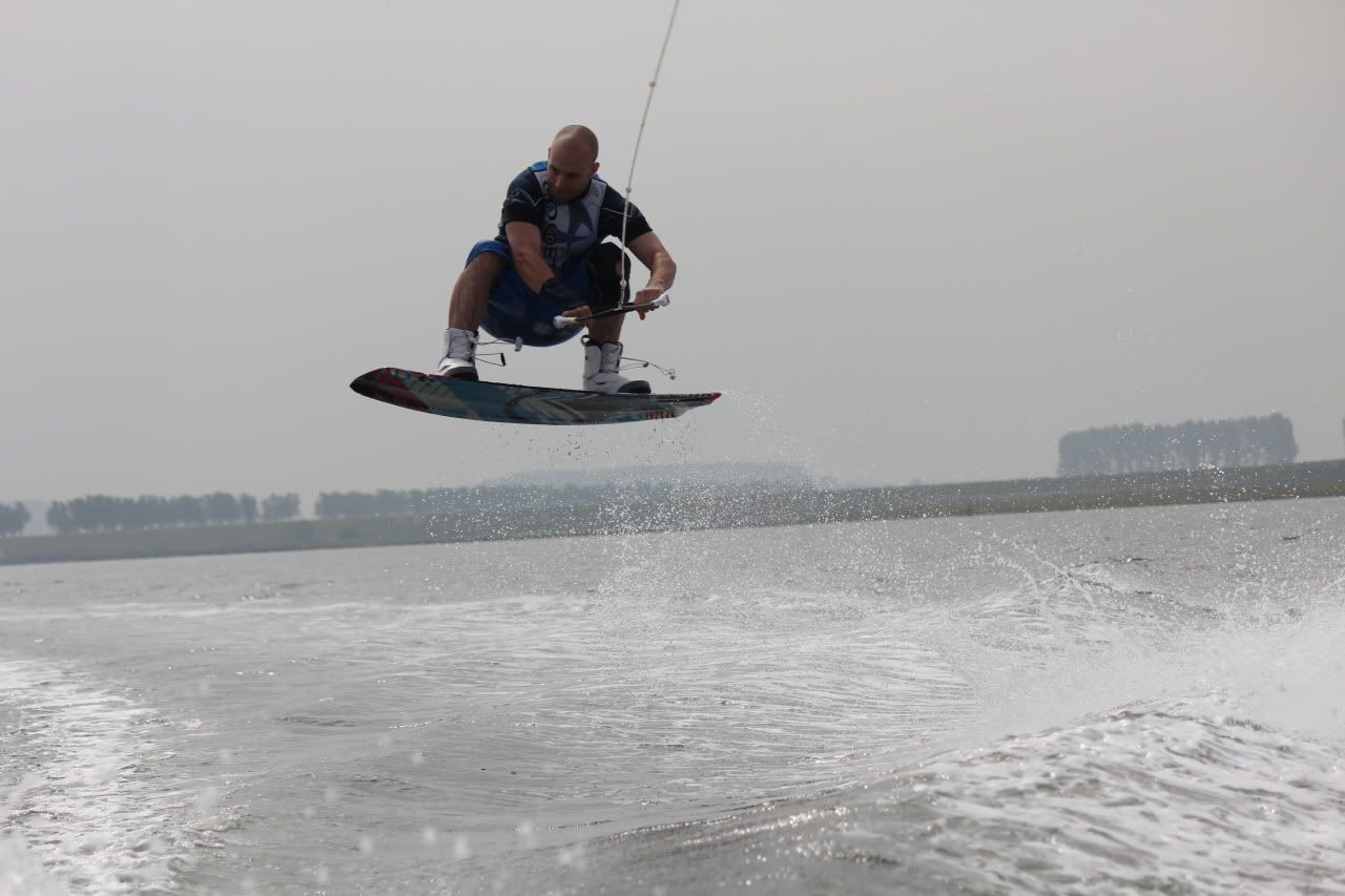 So, yesterday was my first time behind a wakeboardboat, and it was a blast! last year i went a few times behind my friends normal speedboat which had a pretty small wake, but i could clear that wake and do grabs/180's both heelside and toeside. but now i rode the Malibu Wakesetter, even without ballast just 4 people in it, and the wake was noticably bigger and it was harder to clear it! but i did manage to clear it clean a couple of times: