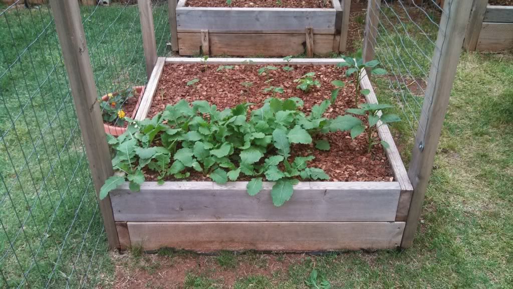 Things are growing nicely. We got a burst of hot weather very early this year, so some of the cool season veggies are thinking they're supposed to be done. The broccoli decided to start bolting and I've had a couple of the spinach do the same. Other than that, everything is doing good. Turnips are close to harvest time and I've already trimmed some of the leaves for turnip greens. Here are the latest pictures: